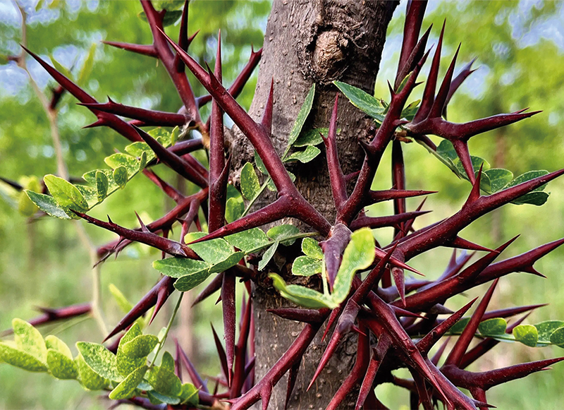 皂角樹多年生枝,以及樹干生長(zhǎng)棘刺,棘刺多數(shù)分枝,刺粗壯,通常分枝即刺上長(zhǎng)刺。皂角刺入藥可活血并治瘡癬,消腫排膿,搜風(fēng)拔毒等等。藥用價(jià)值很高。